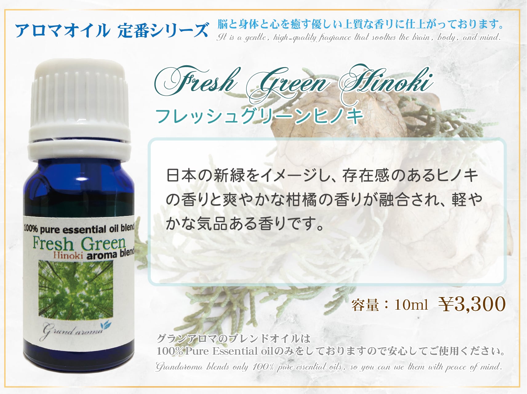 植物の花や木・葉・果実などから抽出された100%天然の芳香成分(100%Pure Essential oil)のみを使用しています。香りだけではなく空間を知り尽くしたアロマ空間デザイナーによって丁寧にブレンドされた、グランアロマオリジナルの香りです。