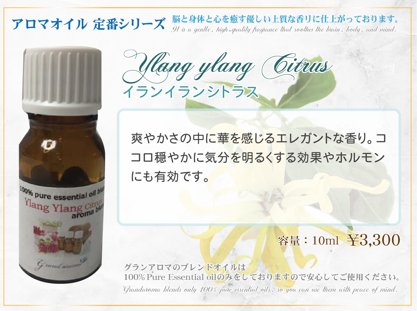 スィートオレンジ・グレープフルーツ・イランイラン・レモン・ゼラニュム・ジャスミン・ラベンダー・etc